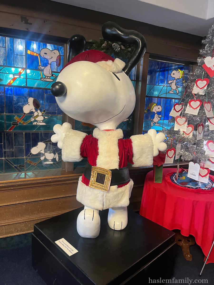 During the holidays, Snoopy and the rink are all decked out. Read more about the Schulz Campus here.
