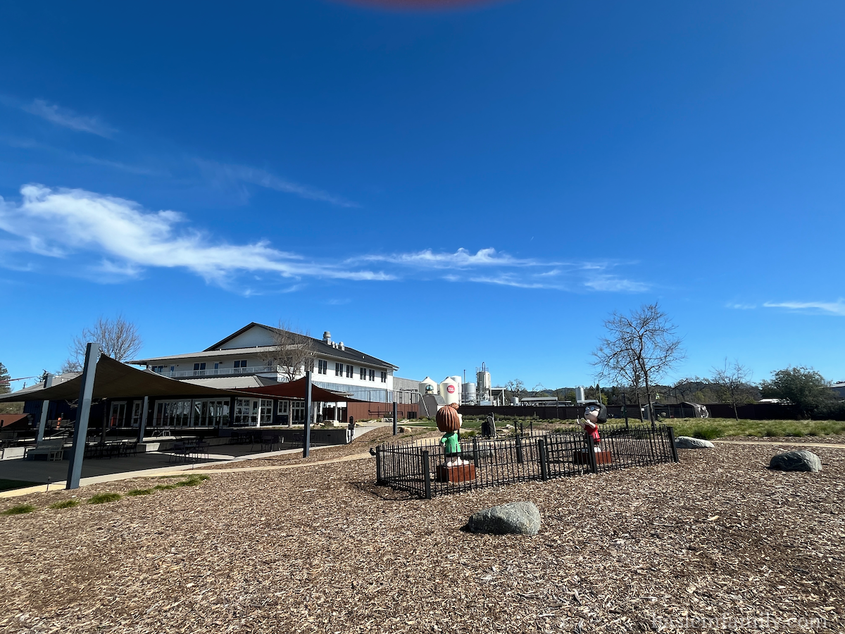Peppermint Patty and Marcie are outside the Russian River Brewery passing a frisbee. Grab a pint of Pliny!