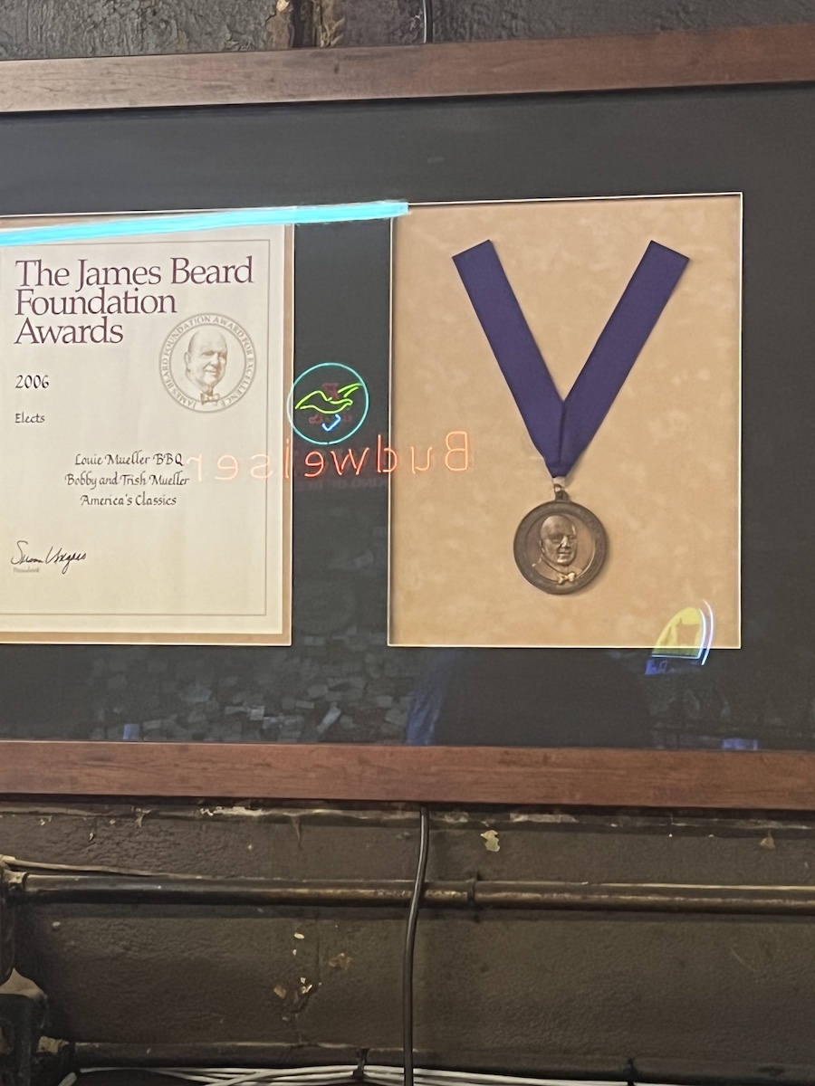 I had noted Austin's own Franklin’s barbecue on our itinerary during our "Haslem Escapade" excursion. However, the timing didn’t work out due to their limited hours, as any great bbq place has. Hence, heading over to Louie Mueller’s in nearby Taylor (as listed below). Franklin’s has award winning brisket and other smoked meats available on Goldbelly! We love his PBS show “BBQ with Franklin”. His brisket is said to be devine as seen in one of my favorite movies "Chef".