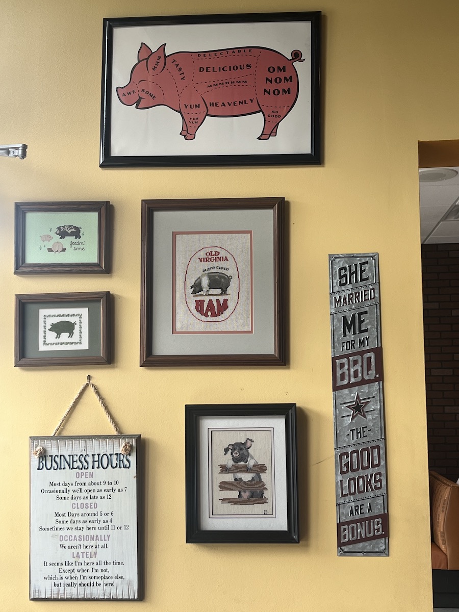 Taking their advice into consideration, I narrowed the choices between two locations in Anderson, since it looked like we were going to stop in that area on our way through. There was a Yelp review stating how one place isn’t as pompous as “that other place”. So, that tipped the scale in favor of Pompous Pig.