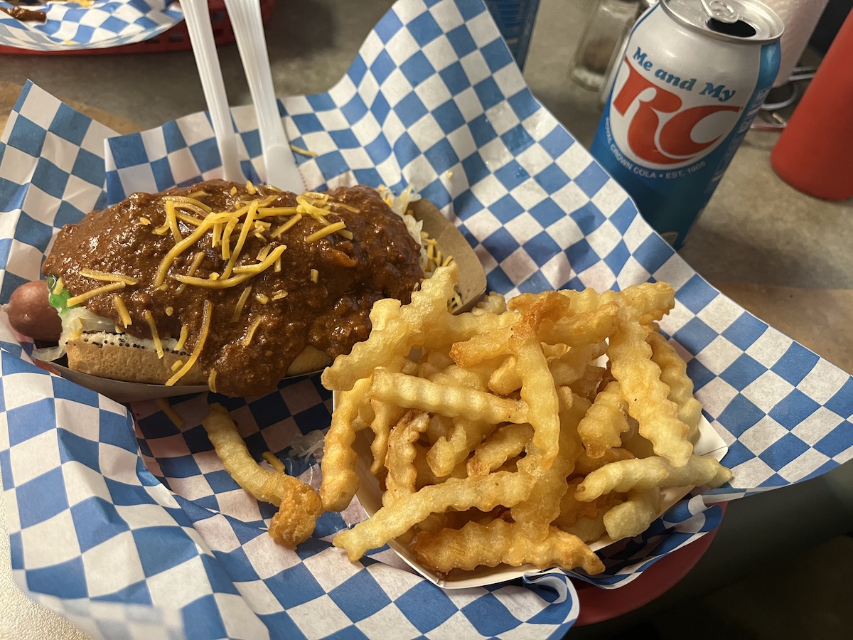 Highly recommend grabbing a cold bottled soda from their cooler and their homemade chips.