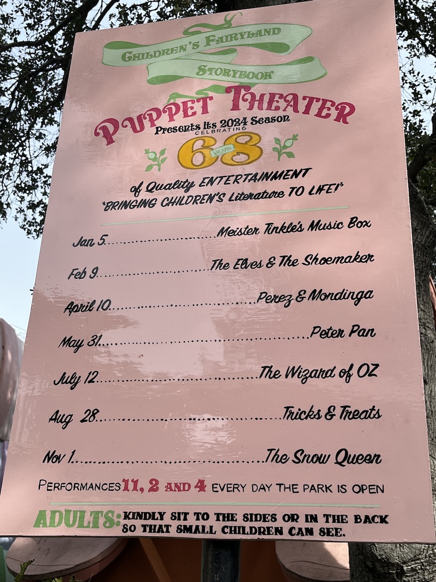 See what's at on stage today at the Puppet Theater! 2025 Open Storybook Theater schedule