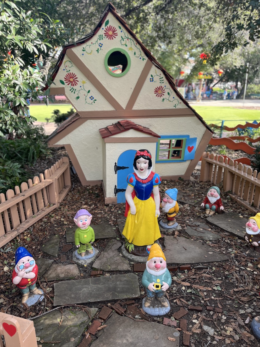 Snow White and the Seven Dwarves are near the recently restored Chapel of Peace.