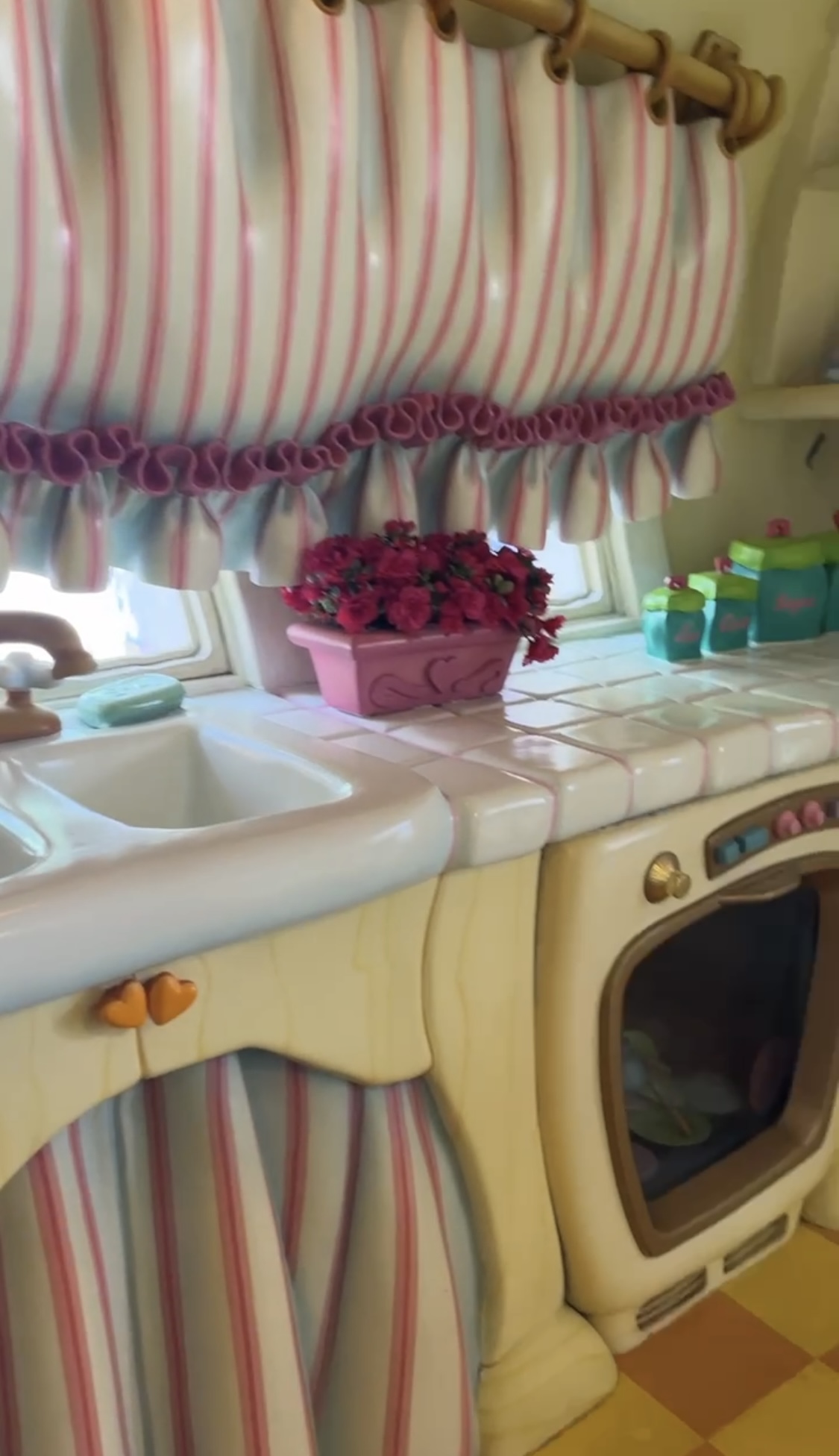 We checked the time and decided to duck into Pixie Hollow to meet a fairy! We were very lucky that we found the entryway during a dry spell in the afternoon. We were just in time for the last admission of a tour of Tinkerbell’s neighborhood. Ushered under the grove, we grew smaller and smaller until who did we see? It was Tinkerbell herself!!