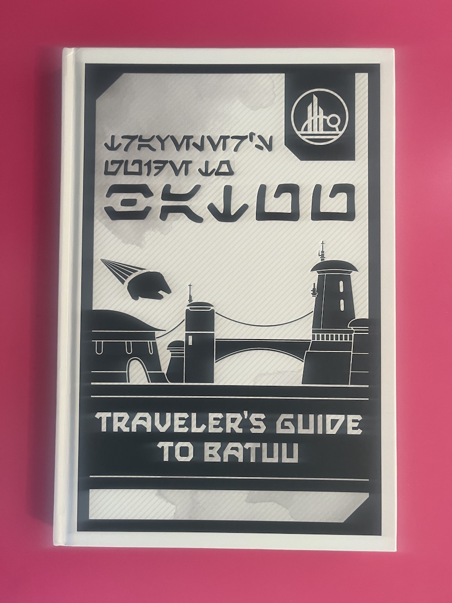 Our first day, we opted to start by heading toward Galaxy’s Edge. Prior to our visit, we’d purchased the Traveler’s Guide to Batuu. This immersive story is a guide to this remote region in space prone to smugglers. Even the kids enjoyed this guide to a Star Wars outpost far, far away.