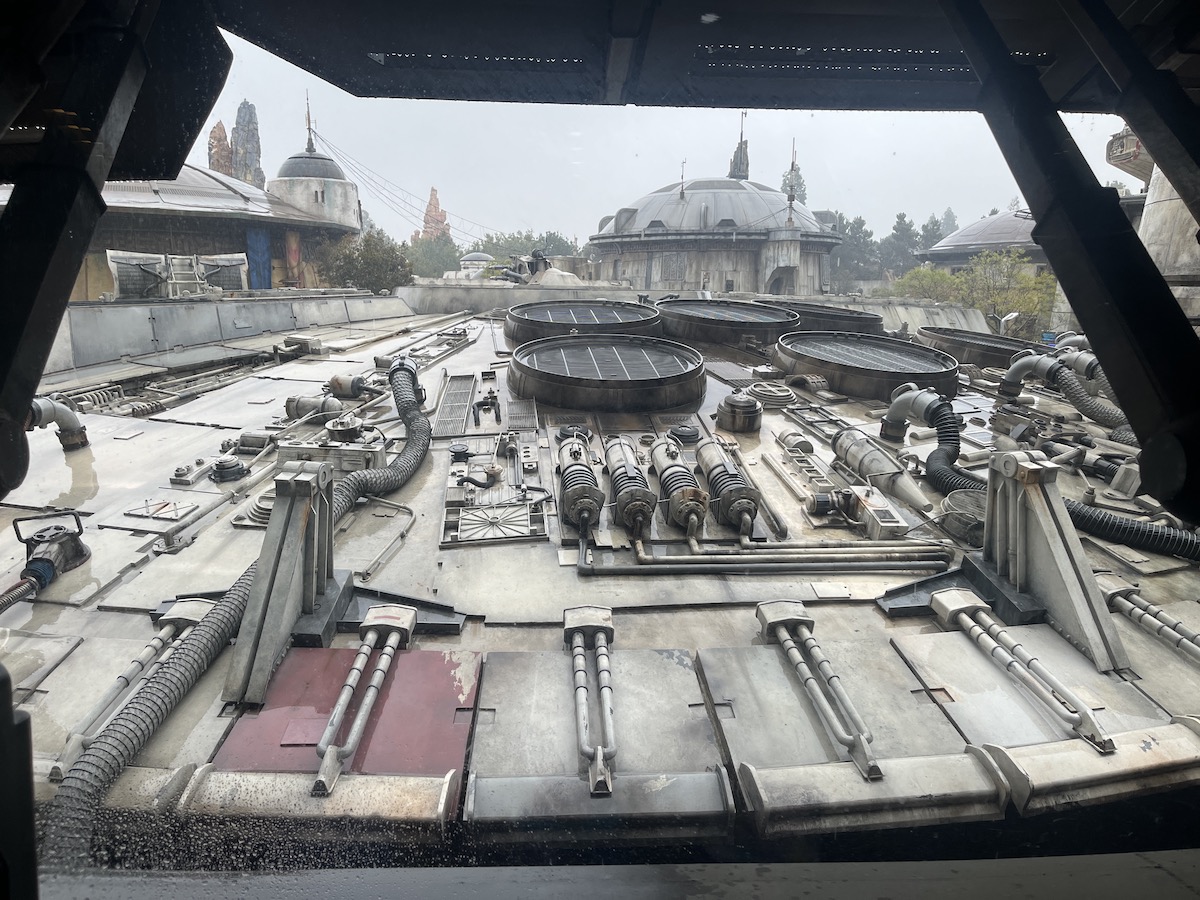 It was raining so heavily during our visit that day as we were looking for the pathway that we completely missed it. Disney Cast Members were present to point us in the correct direction. Once in line for our first ride, Smuggler’s Run, we were pleased to note the line for the ride runs mostly indoors. We had to remove our ponchos for any inside rides during the day while it rained, but they’re thin and can easily be tucked away for your experience.