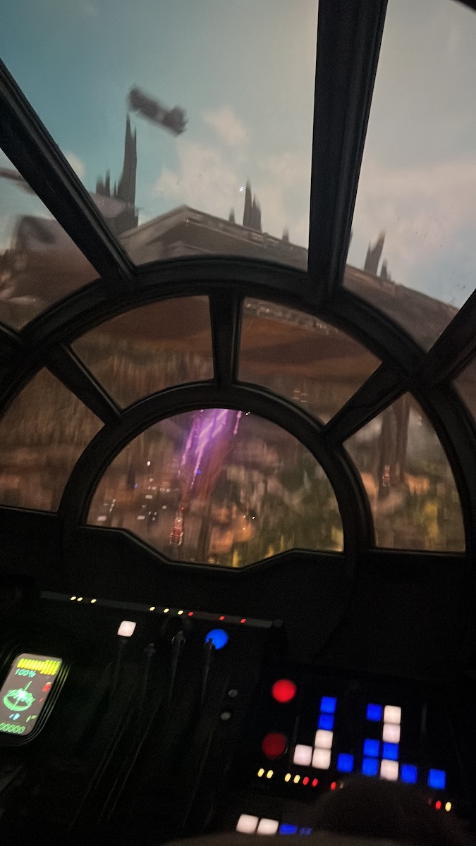 Everyone enjoyed this first attraction! With easily the best wait line in the park, the line moves fairly quickly through the shuttle bay where you feel you’re in the middle of the Rebellion itself. Then, you’re given your team and mission and board the ship! Once on the Millenium Falcon , you blast off for your adventure!