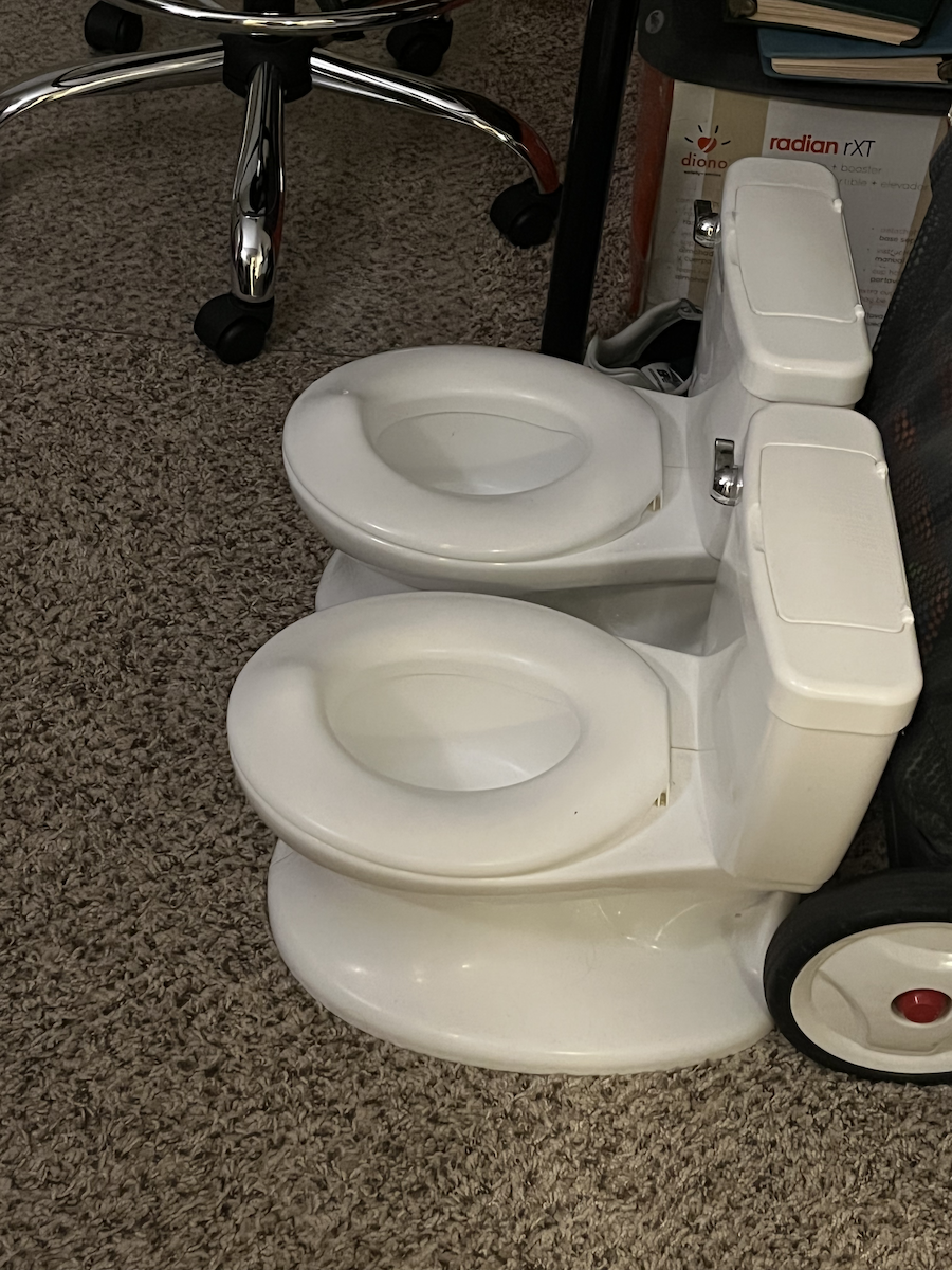 - We had this guy along for the ride for its realism in a tiny facsimile. One stayed at home. The other has been to a multitude of states. See our “Haslem Escapade” for another travel extravaganza for a tot-sized toilet!