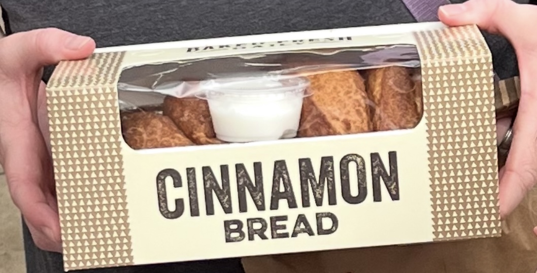 Legendary cinnamon bread awaited us from the Spotlight Bakery on Showstreet. This warm, ooey gooey bread is presented in a handy container with individual slices that seem to all be from the center of a cinnamon roll.