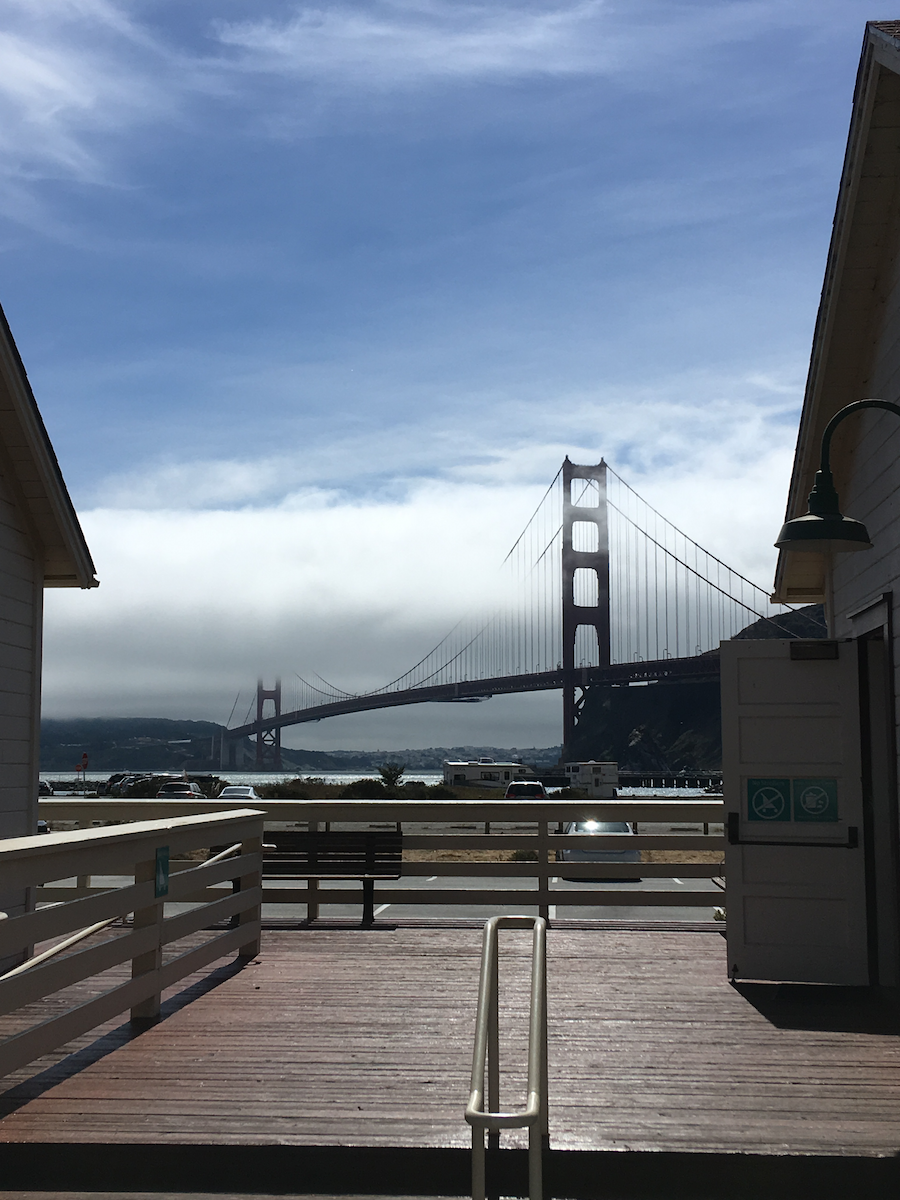 After crossing Golden Gate Bridge heading North on the 101, exit immediately to park and some of the best views of the Bay!