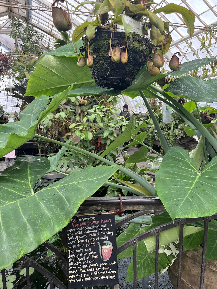 Touted as the “oldest public wood-and-glass conservancies in North America”, The Conservancy of Flowers is home to tropical and carnivorous plants including the Hanging Fanged Pots.